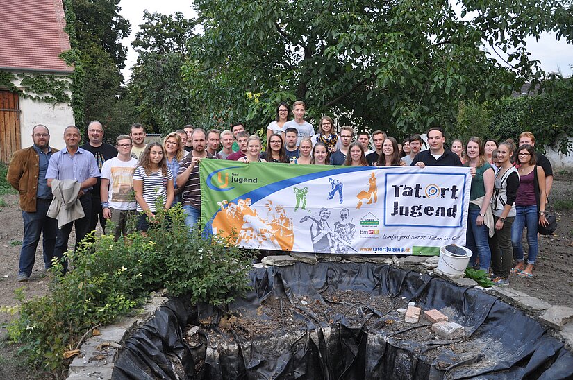 Bereits zum fünften Mal machte die Landjugend Haugsdorf beim Tat.Ort Jugend Projektmarathon vom 2.-4. September mit. Ziel des Projekts ist es, in 42,123 Stunden ein gemeinnütziges Projekt, vorgegeben von der jeweiligen Gemeinde, in welcher das Projekt ausgetragen wird, umzusetzen. Die heurige Aufgabe für die Landjugend-Mitglieder war die Verschönerung des Pfarrgartens von Haugsdorf. Keine leichte Aufgabe, angesichts des verwahrlosten Zustandes des Gartens, welcher in Zukunft vermehrt genutzt werden soll. Mit viel Einsatz, kreativen Ideen und Teamgeist gelang es aber innerhalb der drei Tage dem Pfarrgarten ein freundlicheres Gesicht zu geben. Es wurde unter anderem eine Feuerstelle und ein Blumenbeet angelegt, ein Teich renoviert, Mauern verputzt und eine Rutsche aufgestellt. Bei der Projektpräsentation am Sonntag fand das Projekt regen Anklang bei der Bevölkerung.